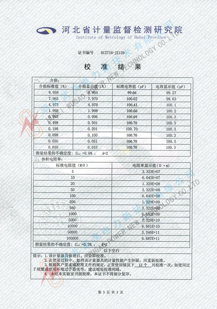 10、空電極杯校準(zhǔn)功能。測(cè)量空電極杯的電容量和介質(zhì)損耗因數(shù),以判斷空電極杯的清洗和裝配狀況。校準(zhǔn)數(shù)據(jù)自動(dòng)保存,以利于相對(duì)電容率和直流電阻率的精確計(jì)算。