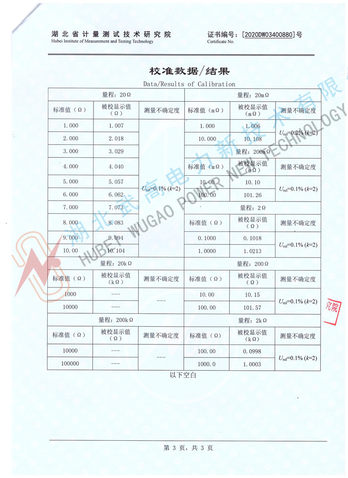 分辨率最小可達(dá)0.1μΩ;測試范圍500μΩ~。