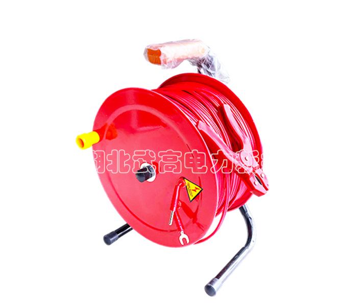儀器附帶兩根測試線,一根紅色50米的線在線盤上,在大的叉子接在紅色接線柱I+,小的叉子接在紅色接線柱U+,一根黑色5米的線上大的叉子接在黑色接線柱I-,小的叉子接在黑色接線柱U-。