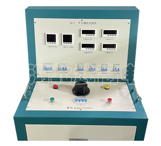 GK-I高低壓開關柜通電試驗臺,別稱高低壓開關柜通電試驗臺車,用于高低壓開關柜生產廠家對所生產的高低壓開關柜進行出廠前的各項通電試驗。它能提供各種交、直流電源,便于對開關柜的檢測,提高工作效率。
