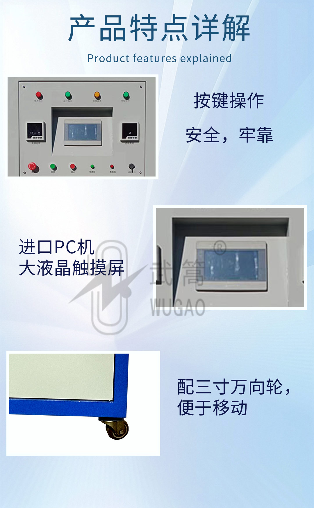 進口PC機真彩大液晶觸摸屏操作,采用支持現場總線技術的智能型傳感器。