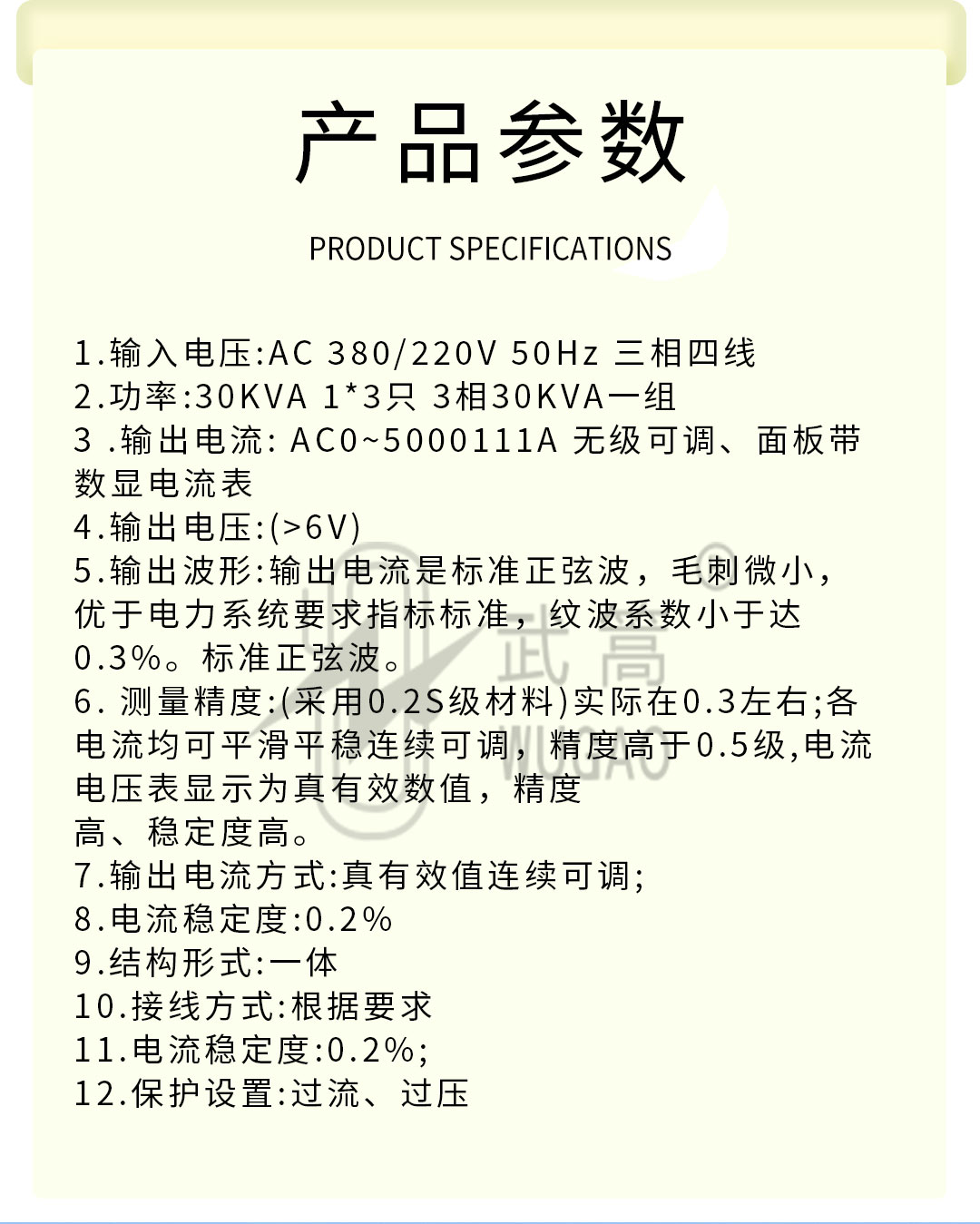 6. 測量精度:(采用0.2S級材料)實際在0.3左右;各電流均可平滑平穩連續可調,精度高于0.5級,電流電壓表顯示為真有效數值,精度高、穩定度高。